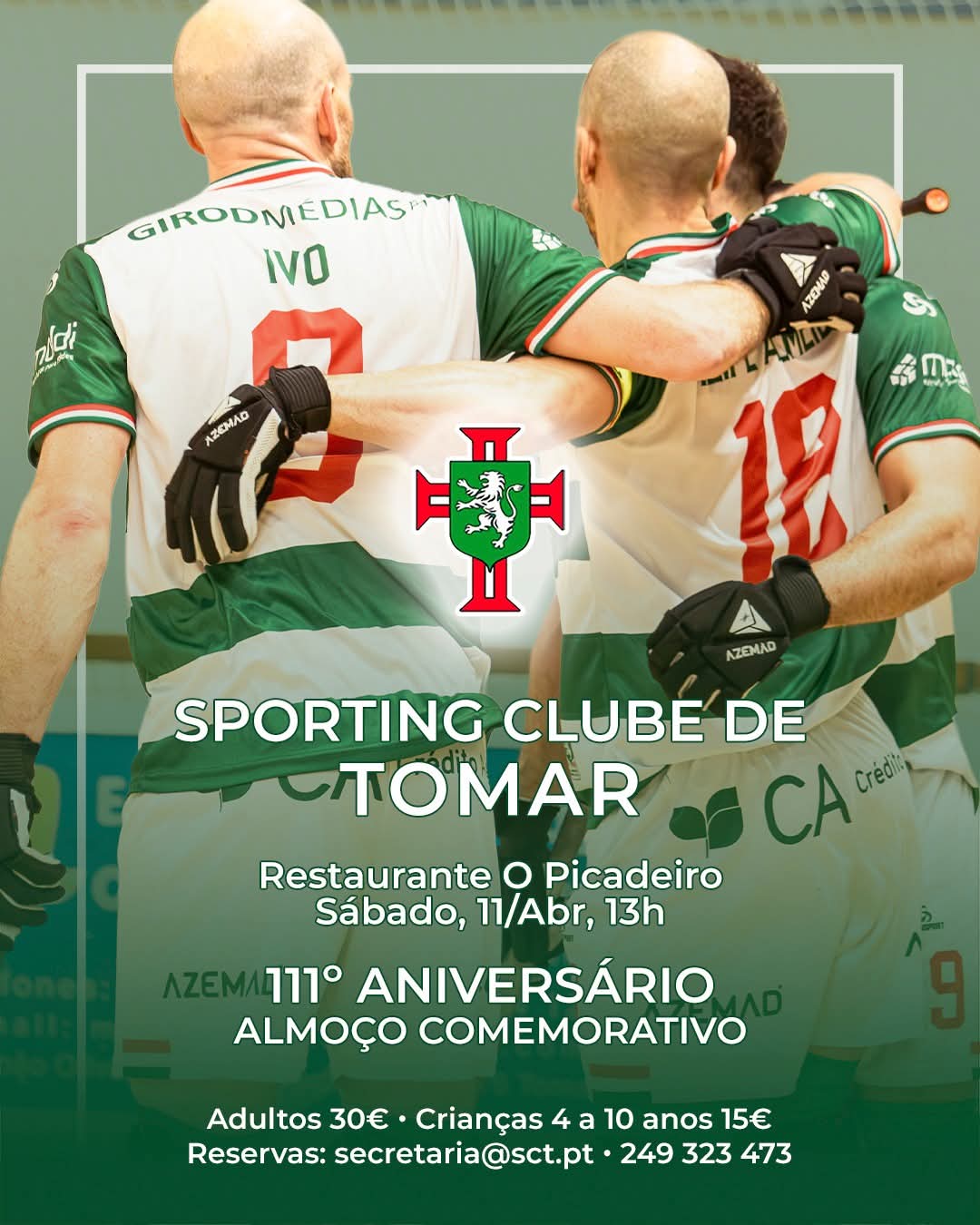 No próximo dia 11 de Abril, queremos reunir a família do 𝗦𝗽𝗼𝗿𝘁𝗶𝗻𝗴 𝗖𝗹𝘂𝗯𝗲 𝗱𝗲 𝗧𝗼𝗺𝗮𝗿 no almoço comemorativo do nosso 111º aniversário.